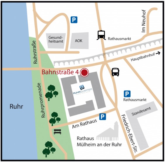Unsere Praxis liegt im Zentrum der Stadt Mülheim an der Ruhr.