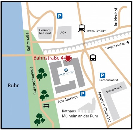 Unsere Praxis liegt im Zentrum der Stadt Mülheim an der Ruhr.